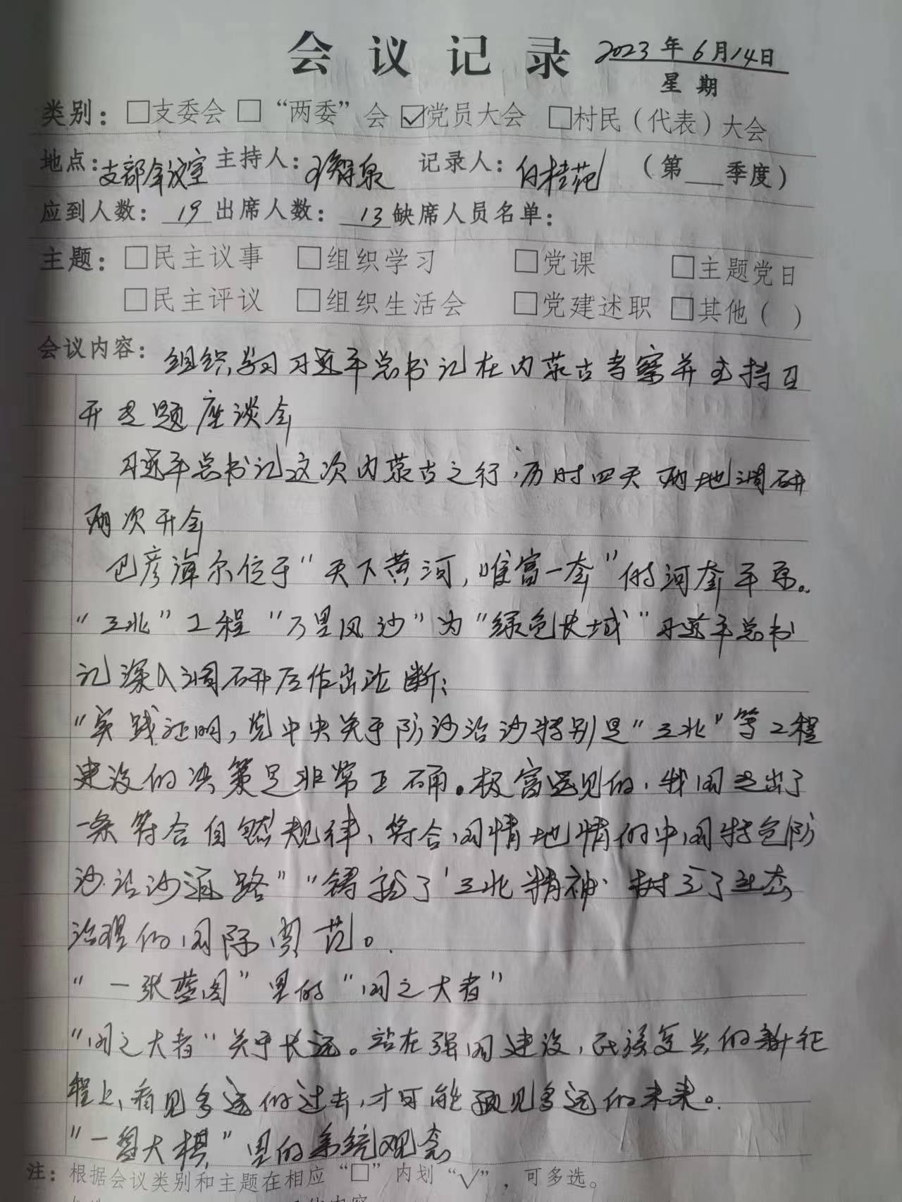 2023年6月14日全体党员学习习主席在内蒙古考察重要讲话