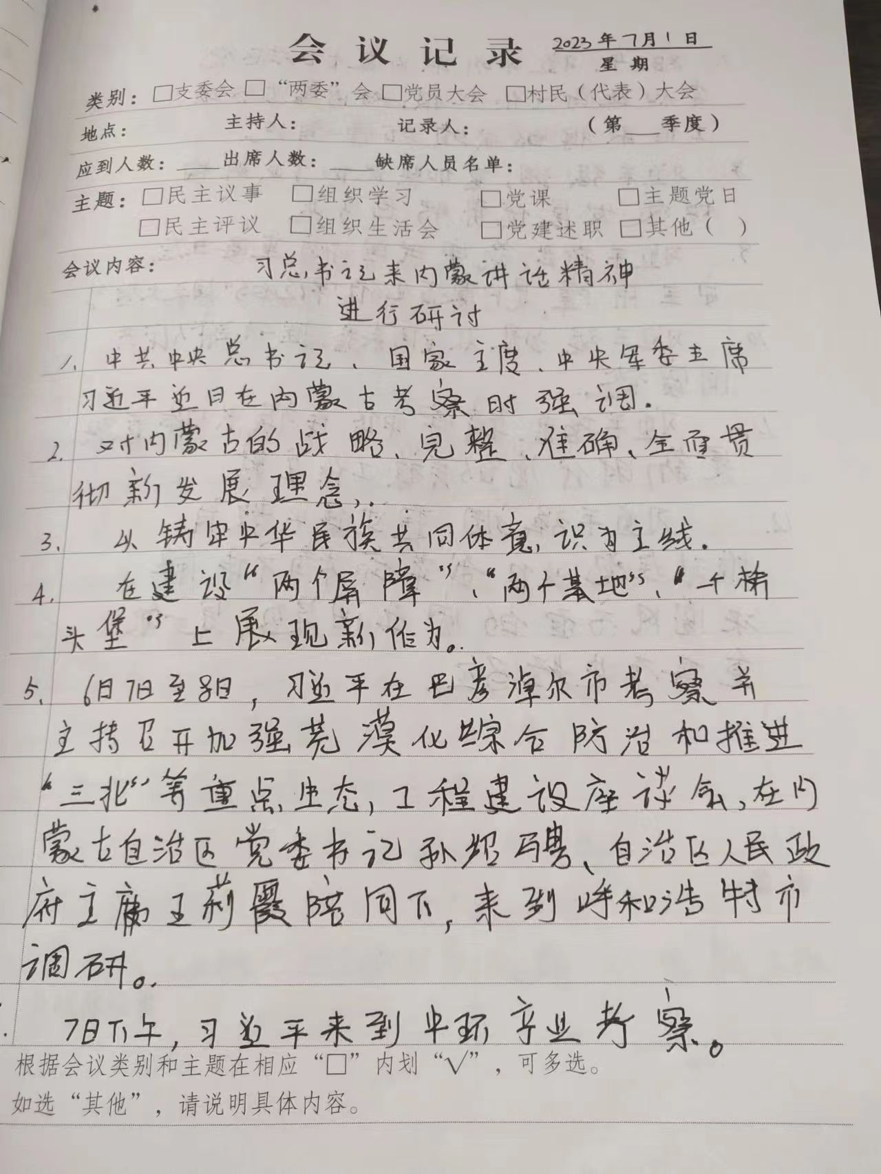 2023年7月1日学习习总书记来内蒙讲话精神进行研讨