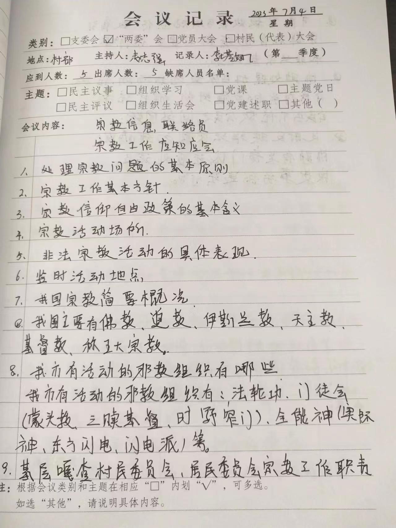 2023年7月4日学习宗教信息联络员