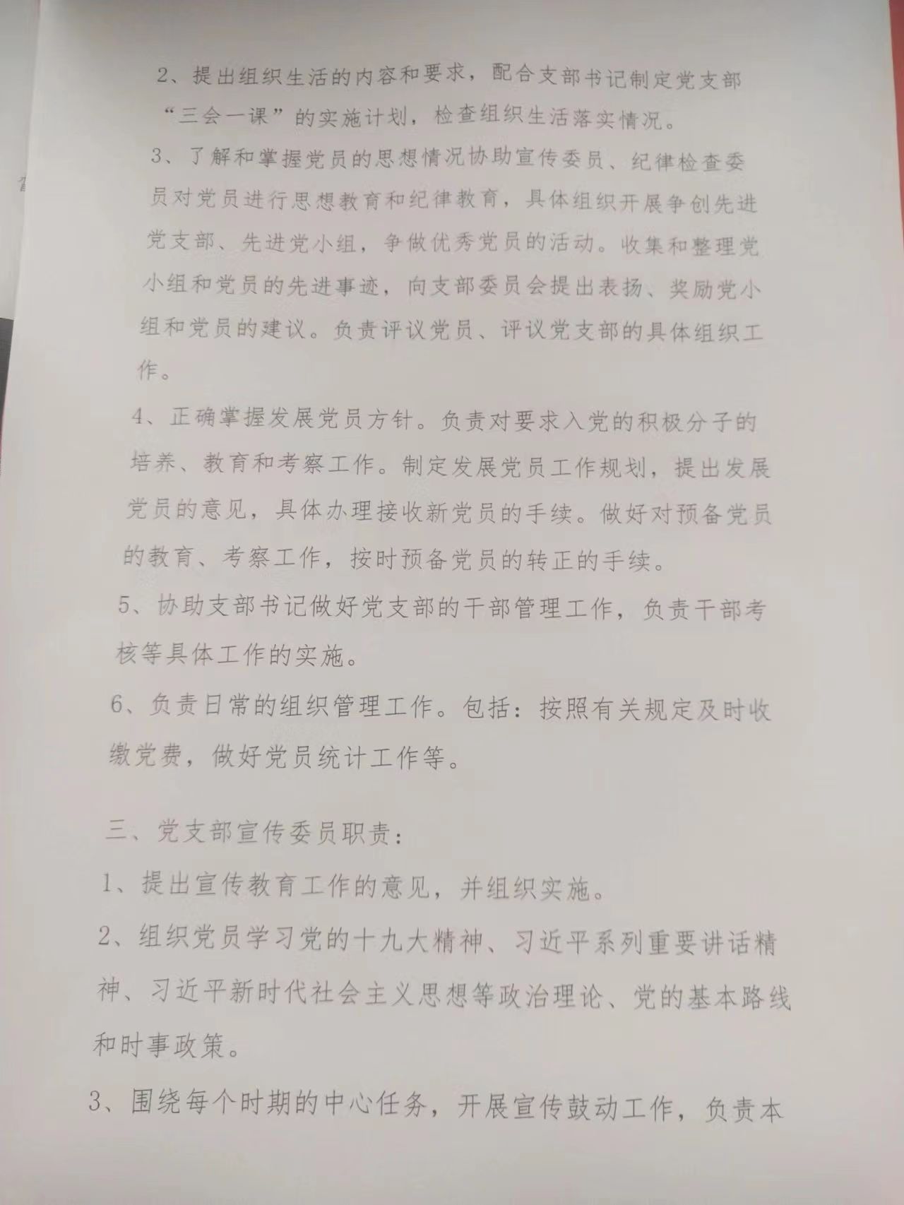 西六家子嘎查党支部成员及分工情况