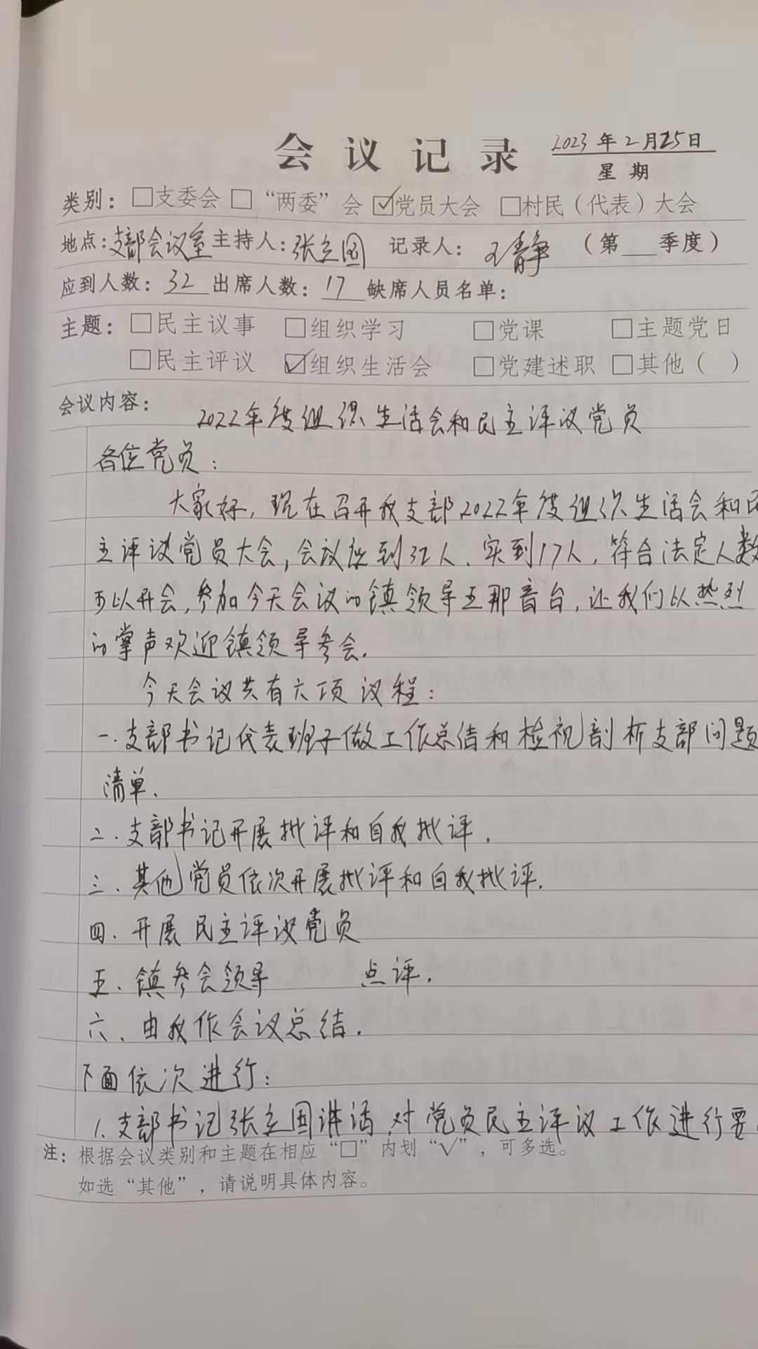 2022年底组织生活会和民主评议党员(2023年2月25日)