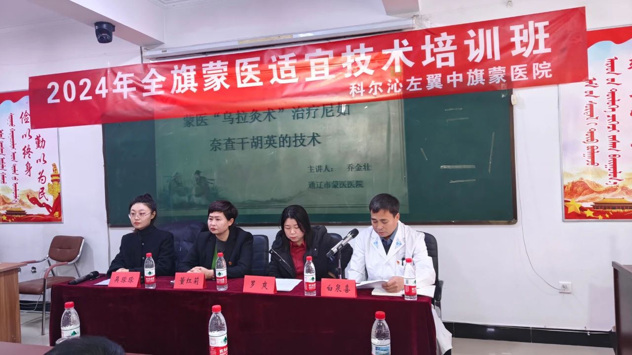 为深入贯彻落实自治区、通辽市中医药(蒙医药)发展战略,充分发挥中医(蒙医)适宜技术在基层医疗机构中防病治病的应用,12月15日—24日,科左中旗成功举办“2024年度基层医疗机构中医(蒙医)适宜技术培训班”。本次培训由科左中旗卫生健康委员会主办,科左中旗中医医院、科左中旗蒙医院两家单位承办。旗卫健委党组成员、疾控局局长罗爽出席开班仪式并讲话。科左中旗中医医院书记赵立忠、科左中旗蒙医院院长白泉喜分别致辞。