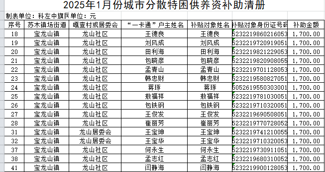 2025年1月份城市分散特困供养资补助清册
