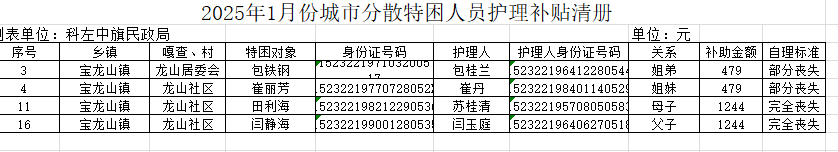 2025年1月份城市分散特困人员护理补贴清册