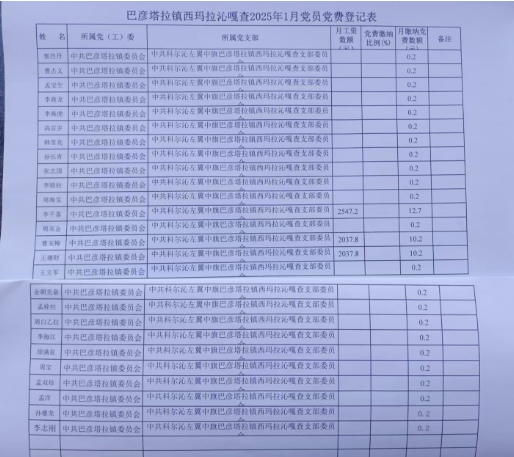 巴彦塔拉镇西玛拉沁嘎查党支部1月份党费缴纳情况公开