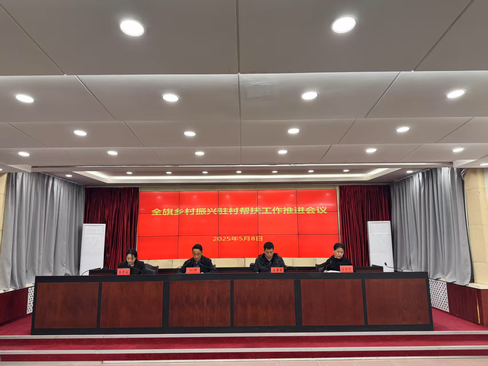 5月8日,全旗乡村振兴驻村帮扶工作推进会议在旗委组织部、旗农牧局联合组织下召开。各苏木乡镇场组织委员、乡村振兴工作分管领导、乡村振兴办主任及全旗派驻嘎查村第一书记、驻村工作队干部等人员参会。会议聚焦乡村振兴重点工作推进、自治区驻站指导反馈问题整改及年度迎检筹备,系统部署下一阶段任务。