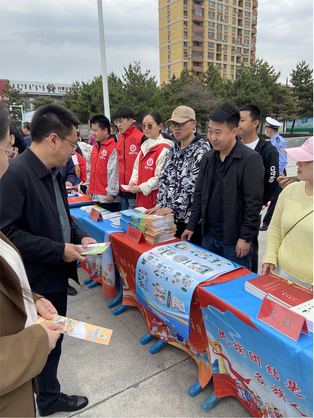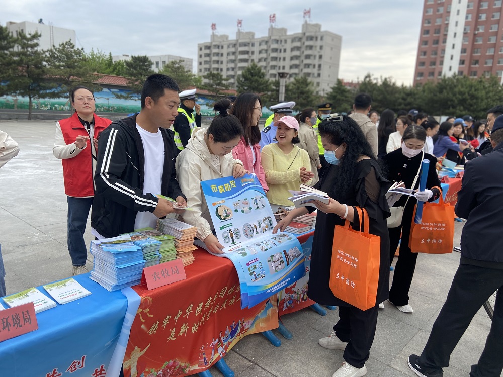 民族政策宣传与动物疫病防控知识普及同步展开。工作人员通过设置咨询台、悬挂横幅、发放宣传资料等多种形式,向过往群众深入宣传铸牢中华民族共同体意识的重要意义,详细解读民族政策法规,让民族团结理念深入人心。与此同时,围绕动物疫病防控工作,旗农牧局疫控中心工作人员向观看群众发放“布病防控”宣传海报,以及“结节性皮肤病”“炭疽病防控知识”“禽流感病防控知识”宣传册,耐心讲解各类动物疫病的症状、传播途径和预防措施,有效提升了群众疫病防控意识和科学养殖水平。