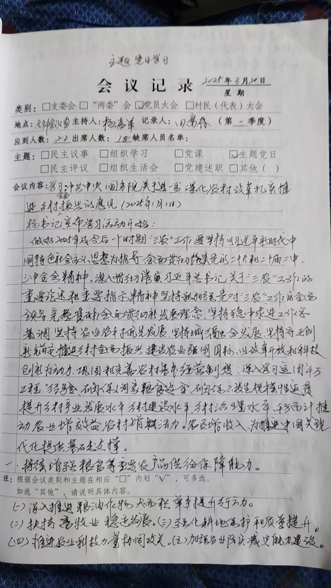 胜利乡平安新村主题党日学习记录