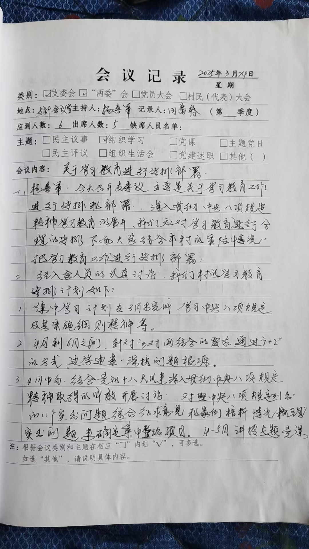 胜利乡平安新村关于学习教育进行安排部署会议记录