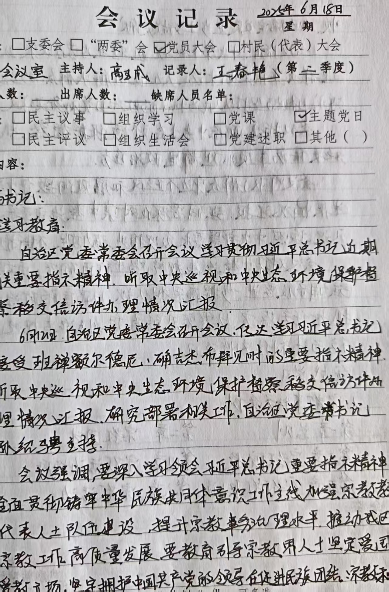 2025年6月18日主题党日组织党员集中学习