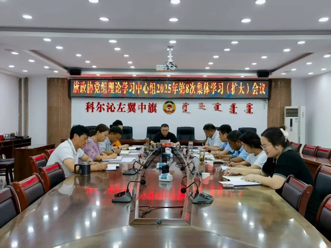 7月24日,旗政协党组理论学习中心组召开2025年第8次集体学习(扩大)会议。旗政协党组书记、主席宝喜主持会议。旗政协党组副书记、副主席杜惠文,党组成员、秘书长陈瑜参加会议。旗政协副主席石秀梅及其他科级干部列席会议。