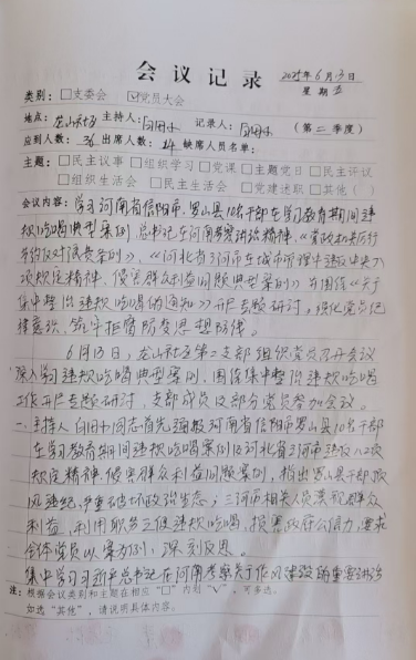 2025年6月13日龙山社区党支部召开动员大会:学习河南省信阳市、罗山县10名干部在学习教育期间违规吃喝典型案例