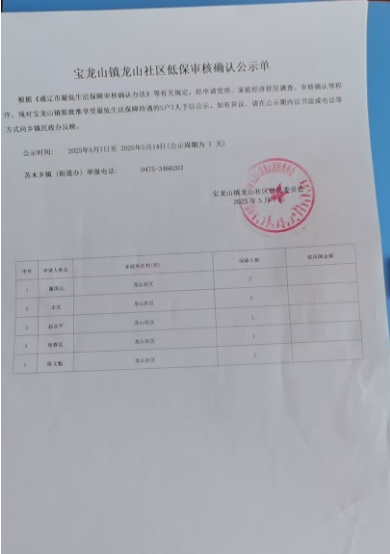 2025年5月份低保公示