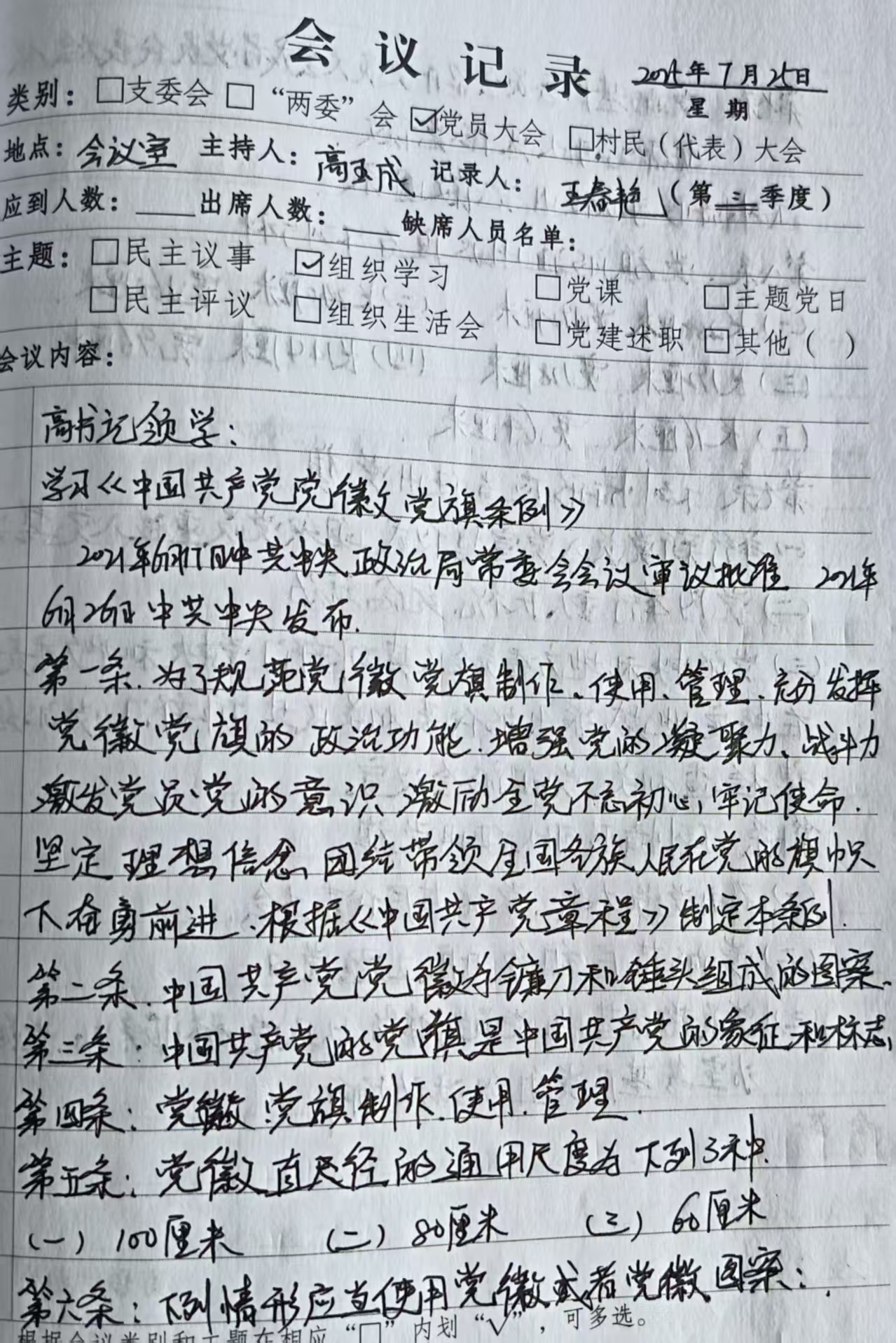 2025年7月25日组织党员集中学习