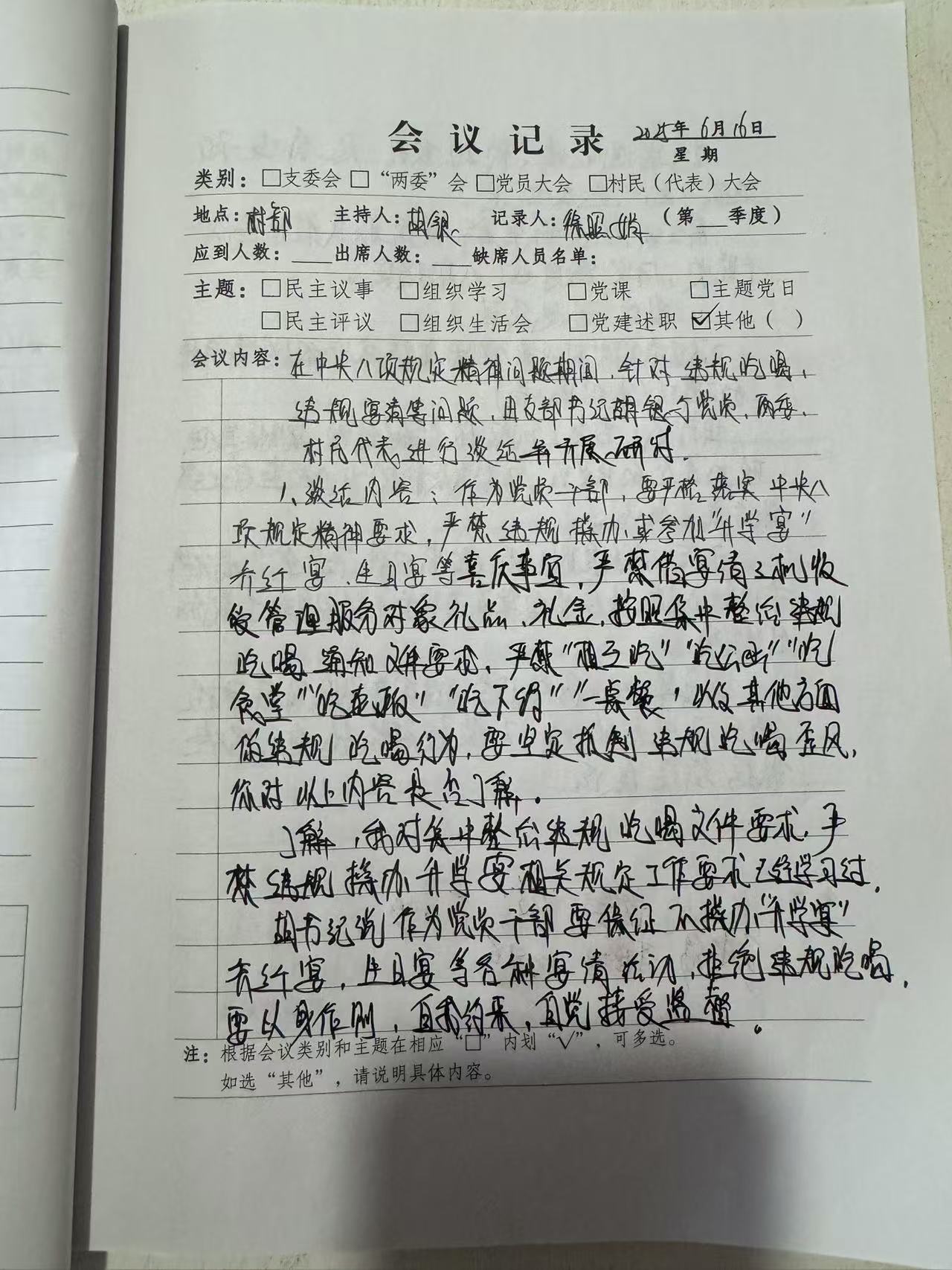 党内关于违规吃喝的研讨会