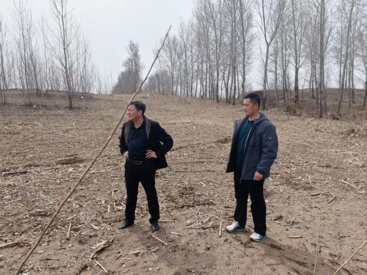4月15日,架玛吐镇人大主席单玉桩及林业工作人员深入大新艾力嘎查实地踏查造林地块