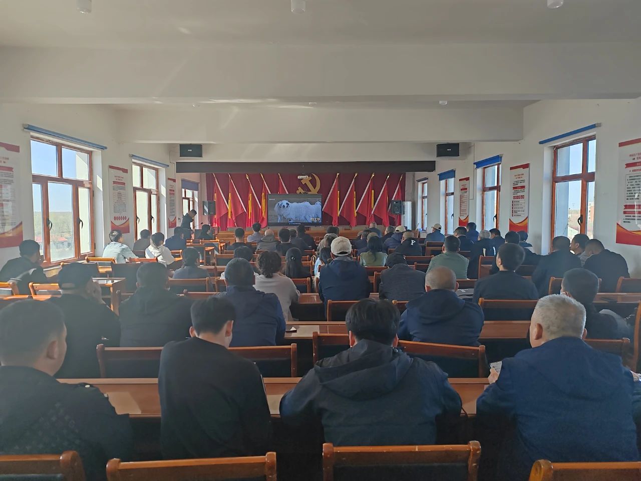 4月27日,架玛吐镇召开布病联防联控专项工作培训会,会上组织全体参会人员集中观看布病防治专题视频,并由专业人员讲解布病的典型症状、传播途径及防治手段等内容,党委副书记、政府镇长陈宏岩、动物防疫站全体工作人员、各卫生院负责人、各嘎查村防疫员、乡医参加会议。