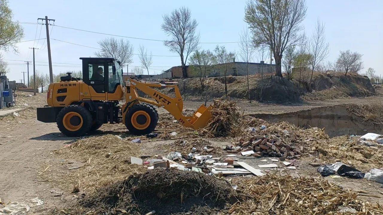 4月28日,架玛吐镇桂家窝堡村出动铲车开展环境卫生整治工作,对堆积的各类垃圾、建筑废弃物等进行清理清运,切实营造干净美丽的人居生活环境。