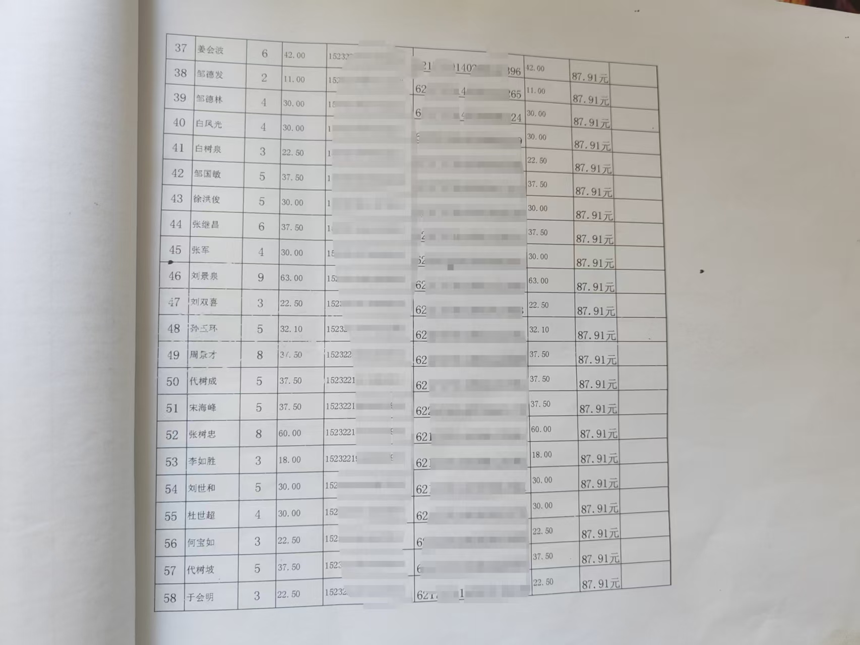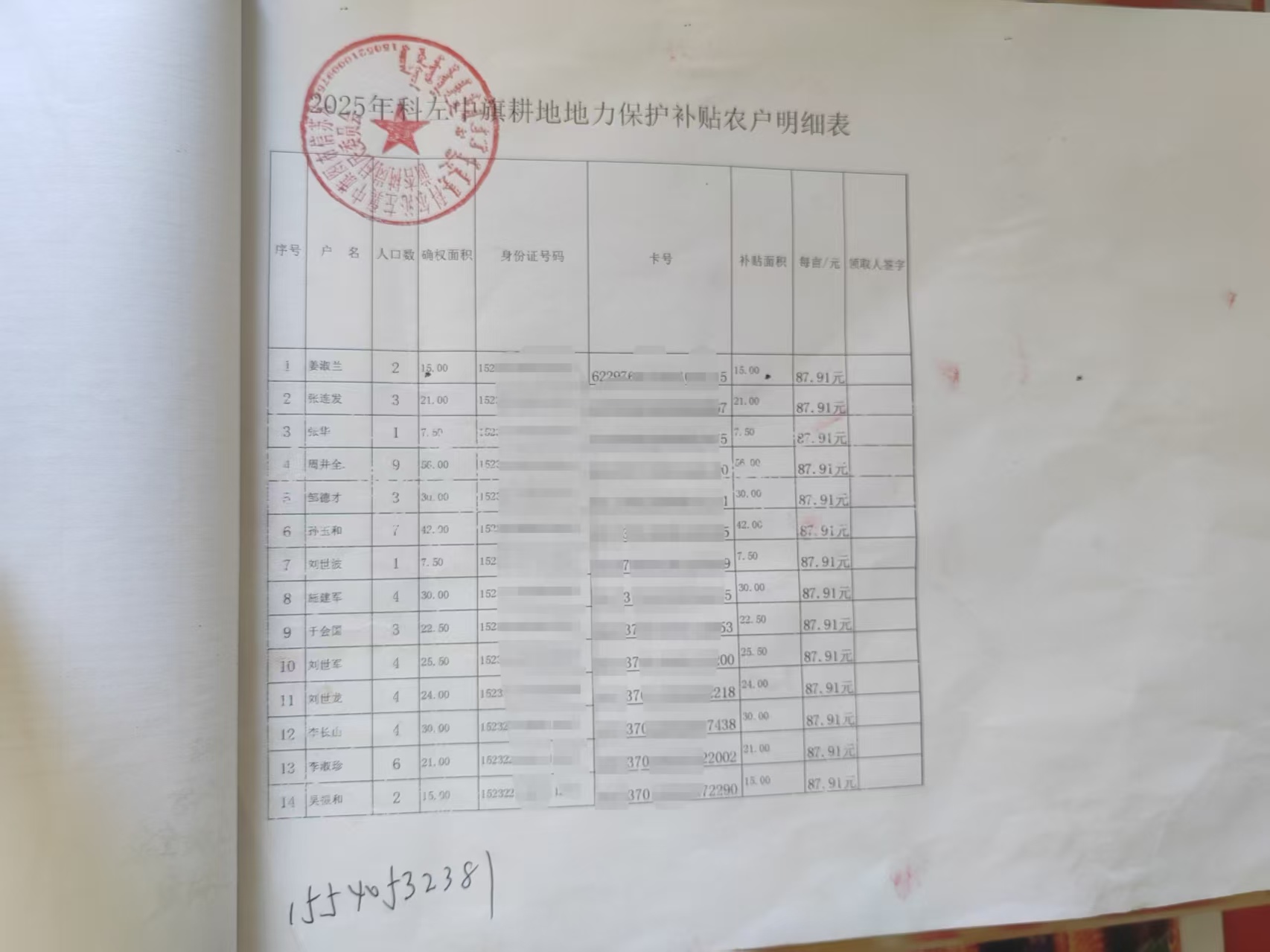 2025年前杏树岗村耕地地力保护补贴农户明细