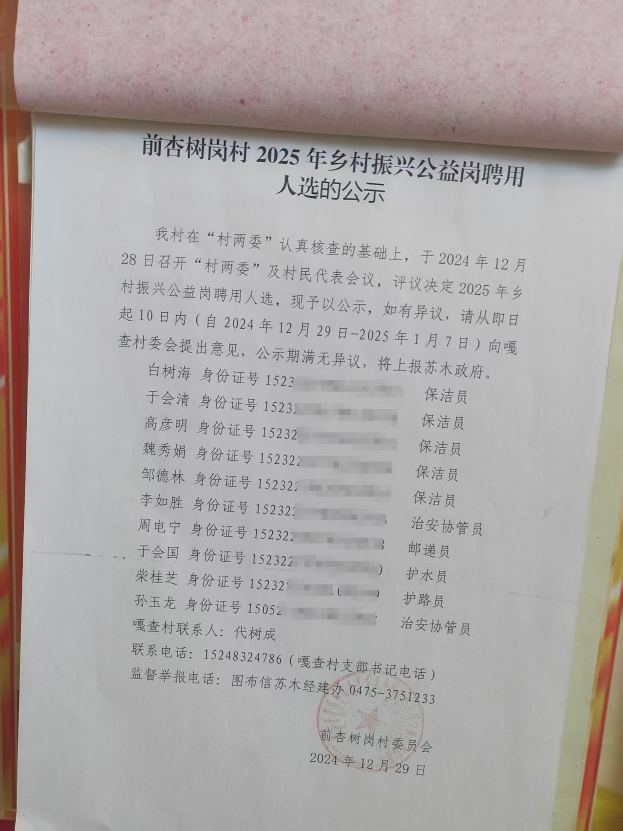 2025年前杏树岗村乡村振兴公益岗聘用人选