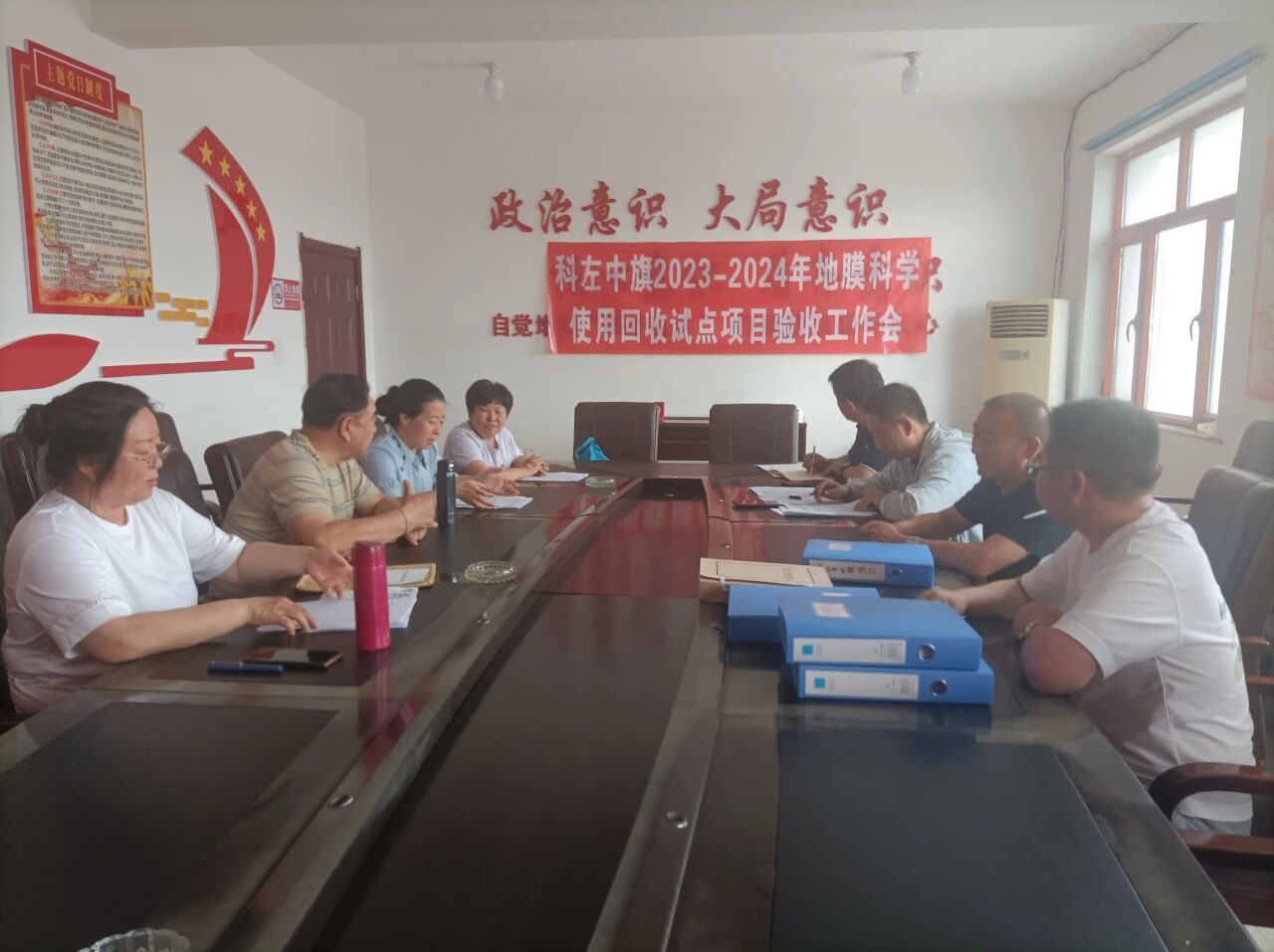 6月12日,通辽市农学会理事长张守乾率地膜科学使用回收验收小组深入架玛吐镇南固仁茫哈嘎查通过现场踏查、翻阅档案、组织座谈等形式开展地膜科学回收试点工作验收。相关工作人员陪同。