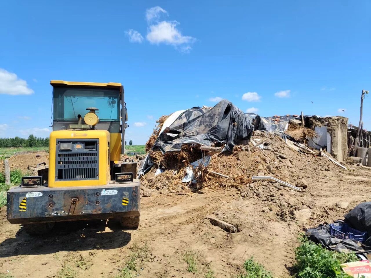 6月21日,架玛吐镇五家户村、大信屯村组织人员及车辆针对村内林草资源保护领域违建进行拆除整改