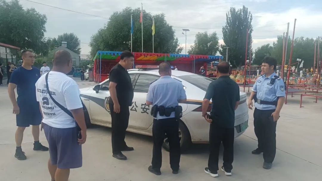 8月1日,架玛吐镇武装部长、政府副镇长包海顺、综合行政执法队队长卢冬联合镇派出所、镇消防站相关工作人员对啤酒节活动进行联合检查