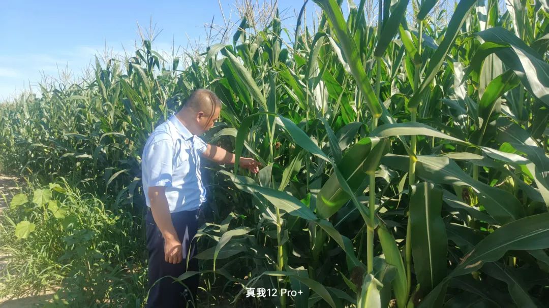 8月10日,架玛吐镇党委书记张志昌深入大信屯村实地查看玉米品字型种植示范区