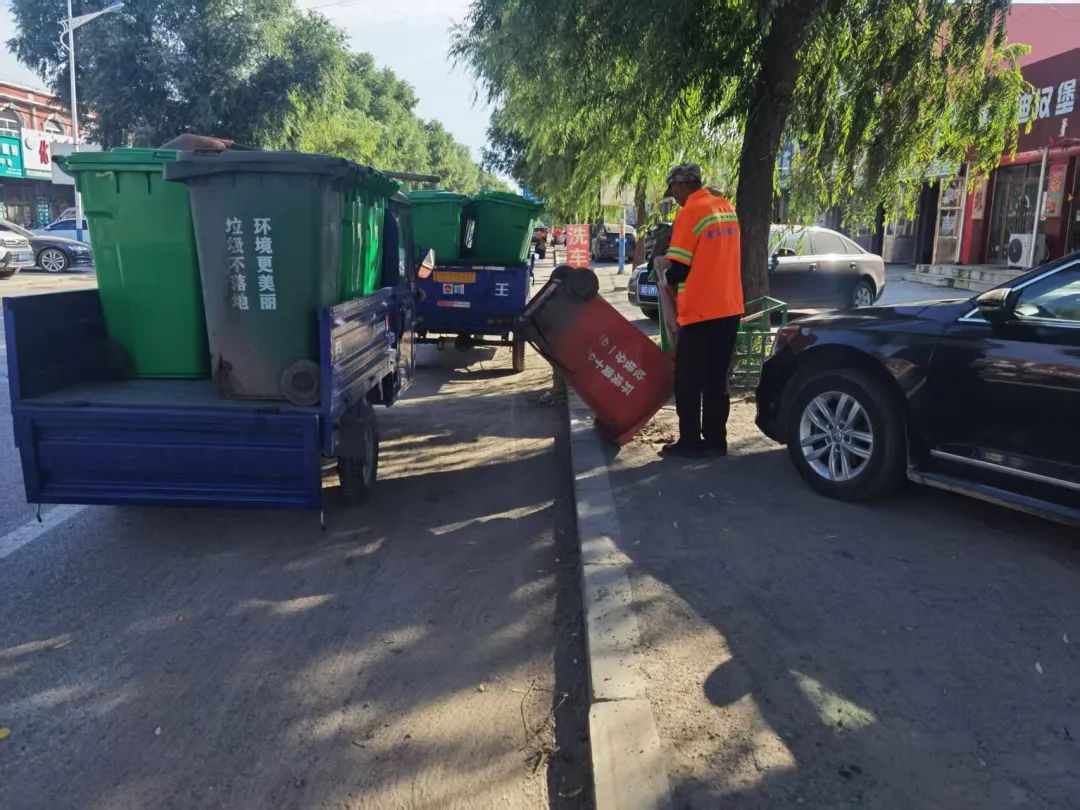 8月18日,架玛吐镇综合执法队组织工作人员对新一批垃圾箱进行安放,确保居民正常使用