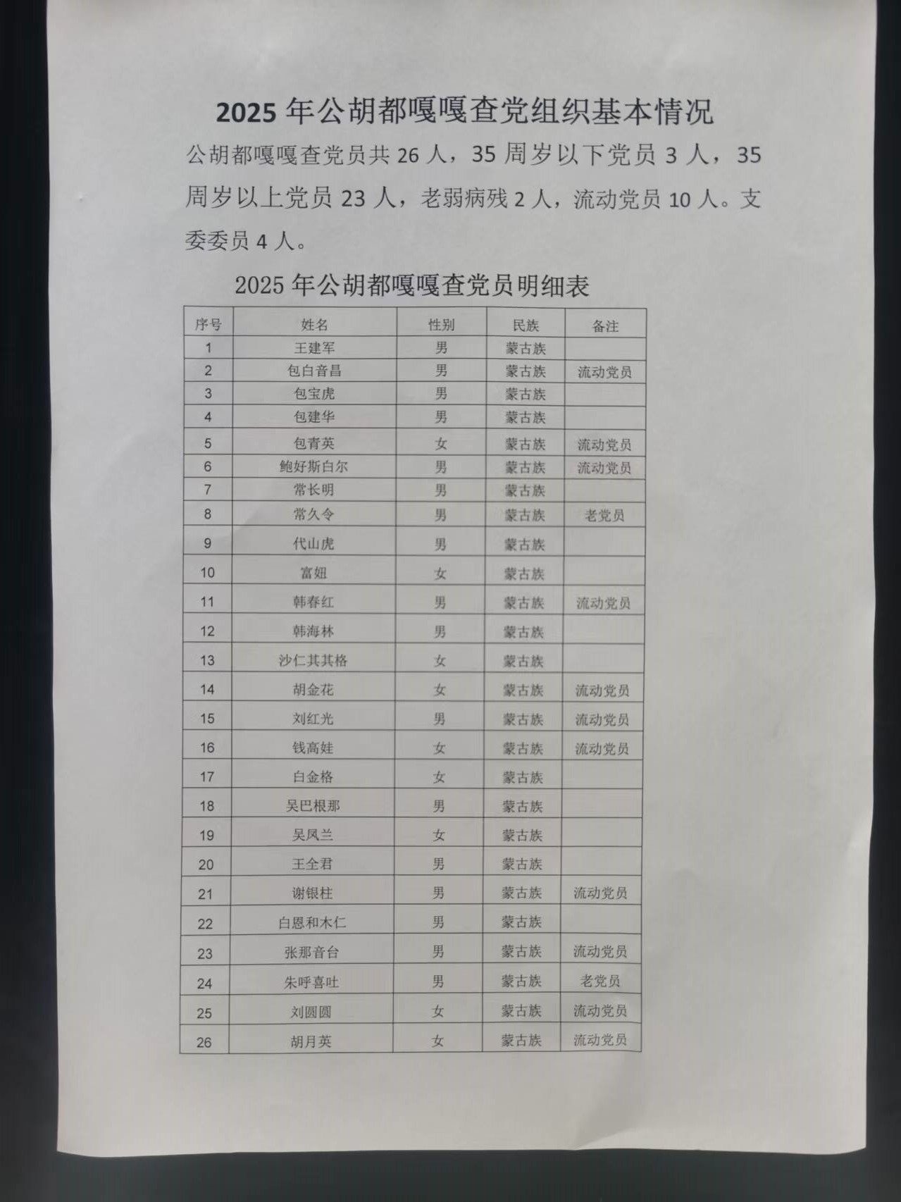 协代苏木公胡都嘎嘎查党务公开之党组织基本情况