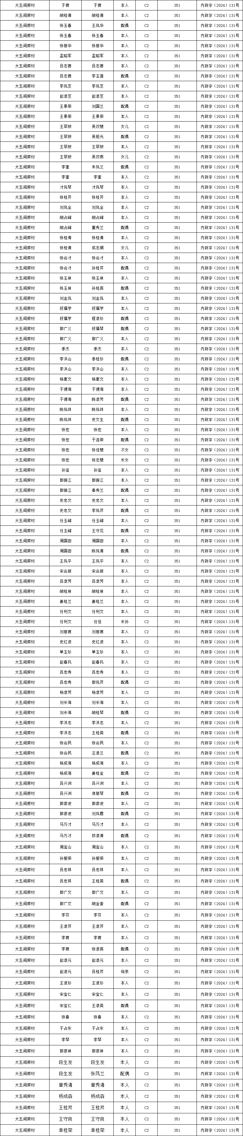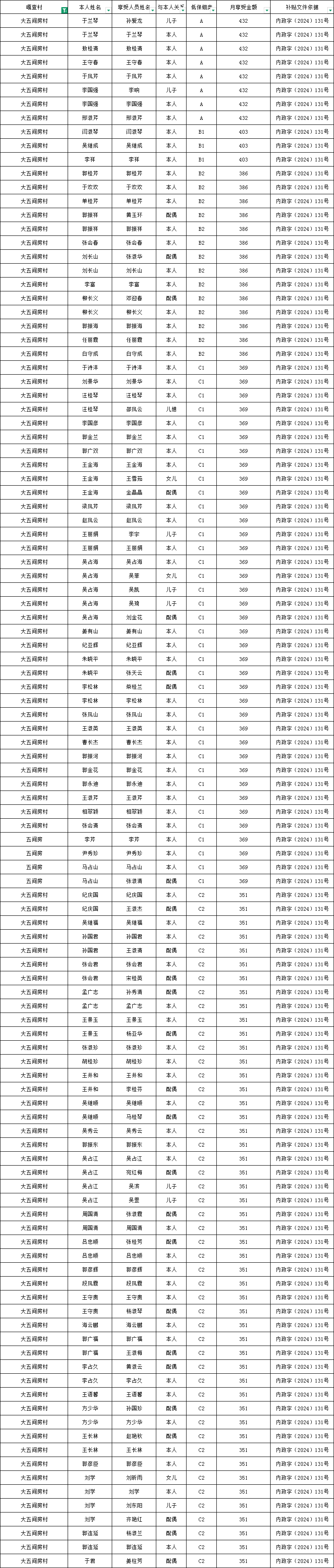 五间房村2025年9月农村低保资金发放花名册