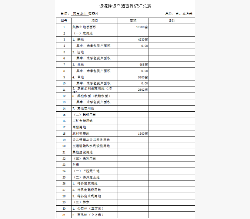 各类资源:包括集体所有的耕地、林地、草地、园地、滩涂、水面、“四荒地”、集体建设用地等