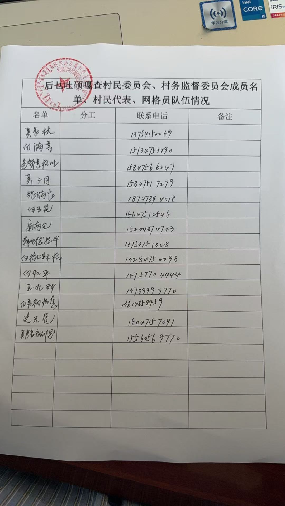 后俄日吐胡硕嘎查村民委员会,村务监督委员会成员名单,村民代表,网格员队伍情况