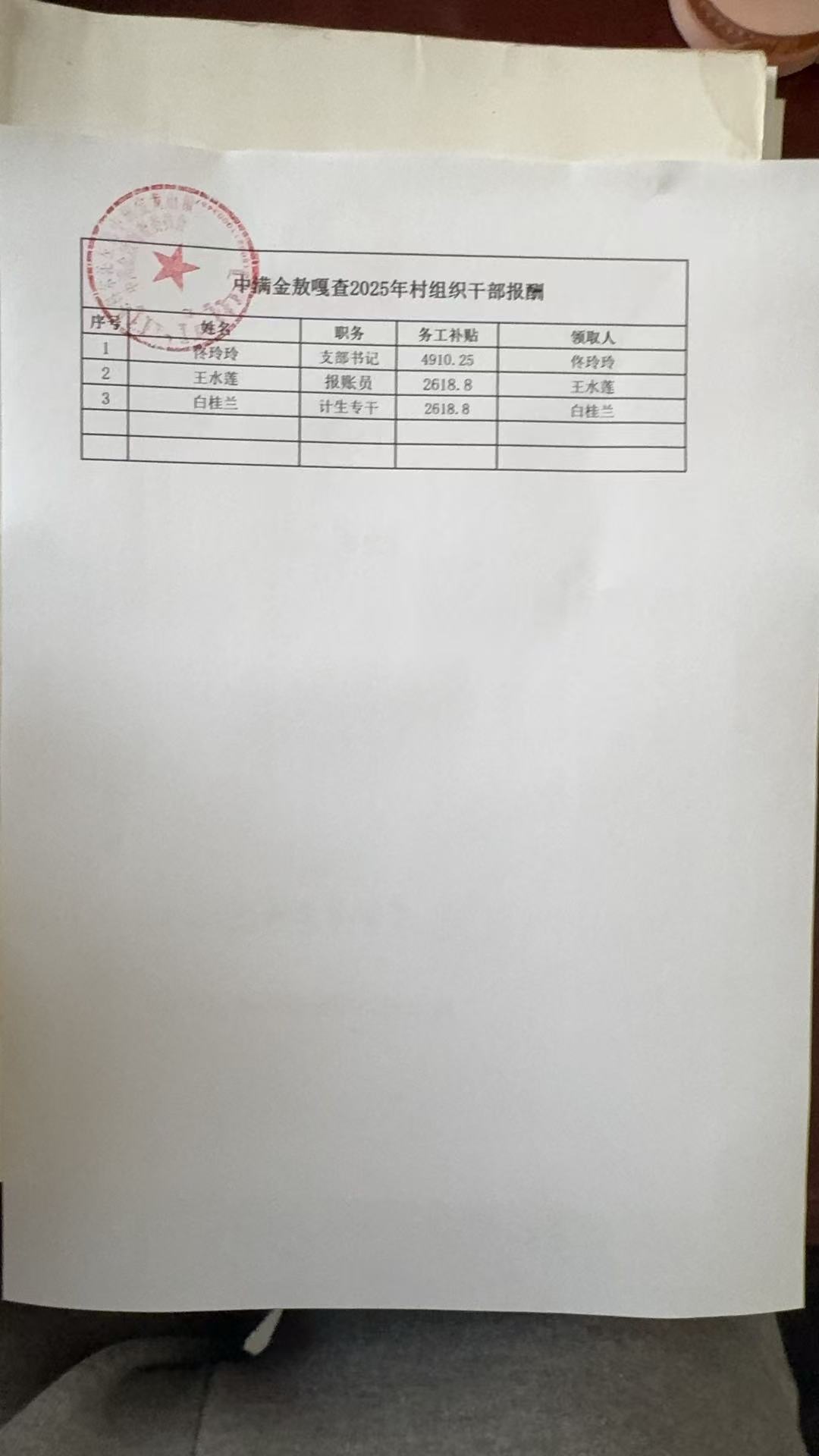 中满金敖嘎查2025年村组织干部报酬