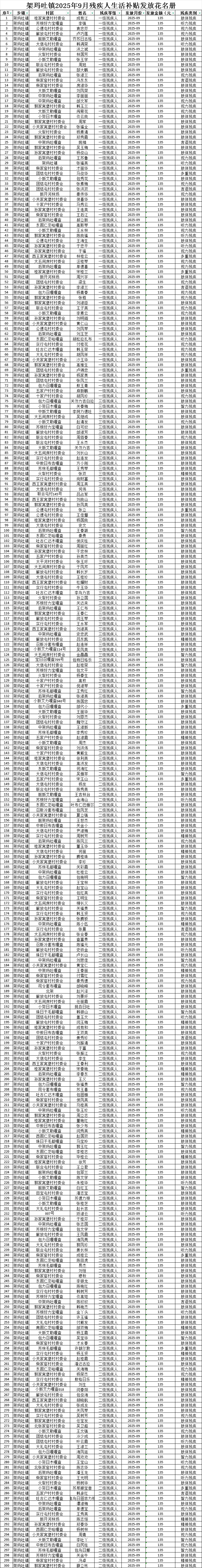 架玛吐镇2025年9月残疾人生活补贴发放花名册