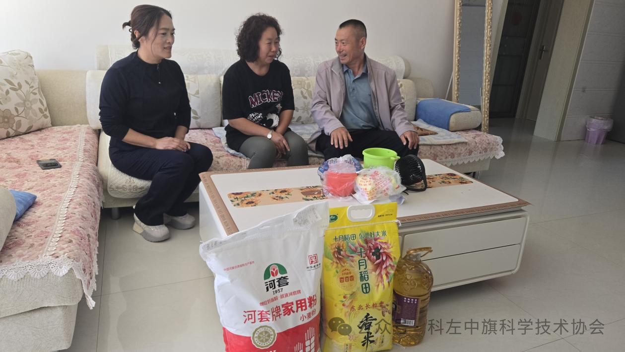 活动中,旗科协武延辉书记与振兴社区党委书记房龙岩以及相关工作人员组成慰问小组,前往三户困难家庭家中,送上米、面、油等生活物资,并与居民亲切交谈,心贴心交流,不仅送去了物质上的帮助,更送去了党组织的关怀与温暖。
