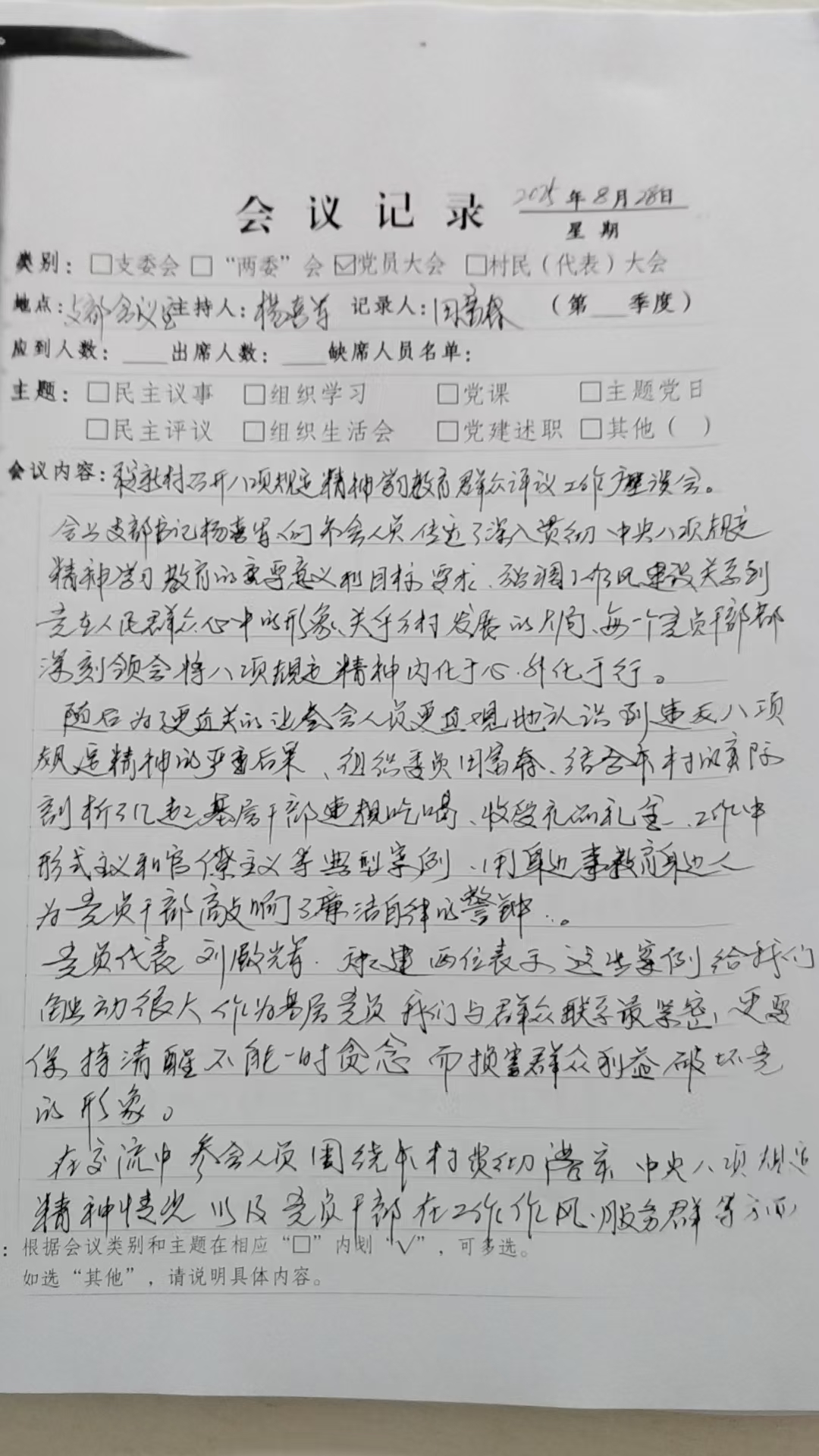 平安新村召开八项规定学习教育群众评议工作座谈会记录