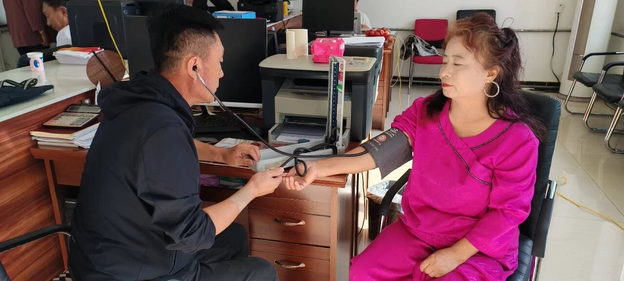 9月29日,架玛吐镇卫生院医护人员联合乡村医生下沉苏根好力宝嘎查,面向村民开展慢性病政策面对面宣传讲解