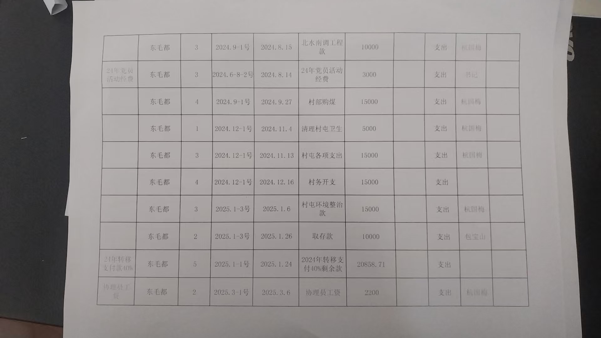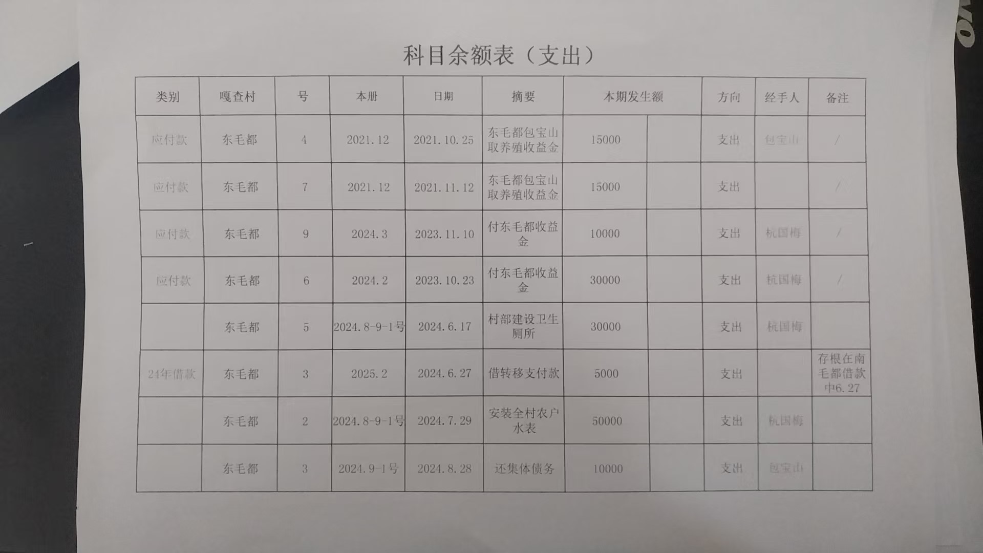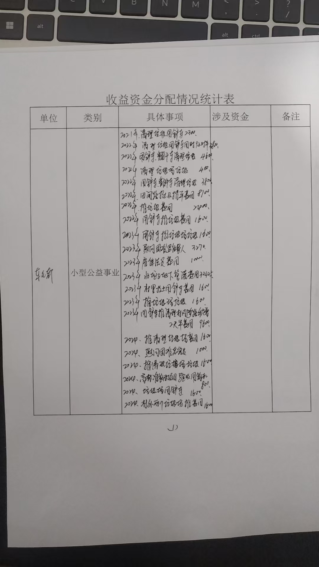 效益资金收支明细