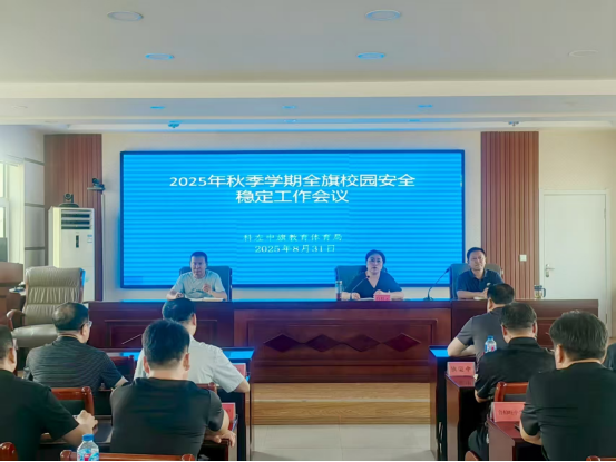 8月31日,继全市校园安全稳定工作视频会议后,科左中旗教育体育局组织召开2025年秋季学期校园安全工作稳定会议,对全旗秋季开学安全保障工作进行再动员、再部署。