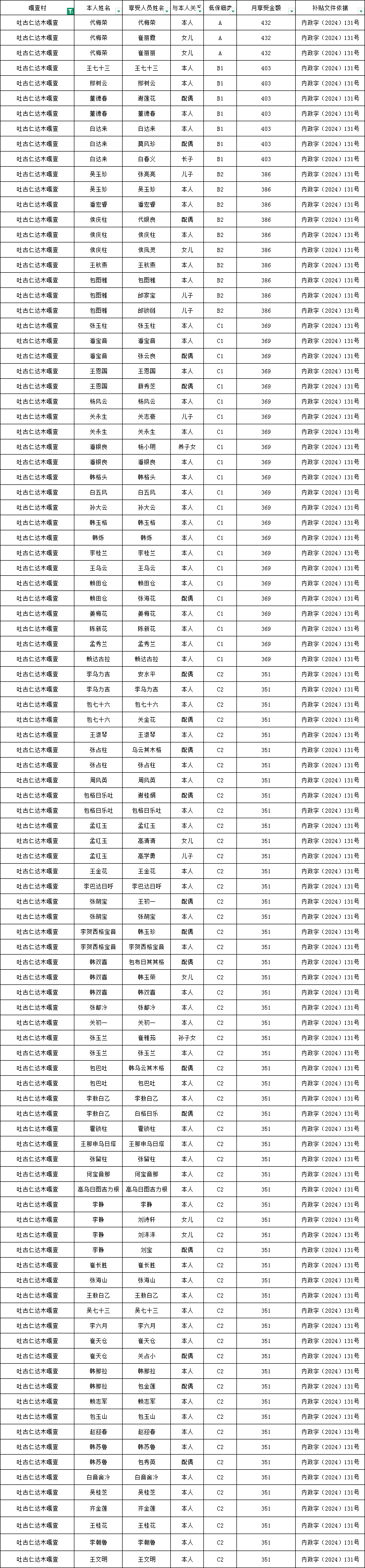 吐林达木嘎查2025年10月农村低保资金发放花名册