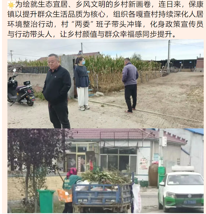 连日来,保康镇以提升群众生活品质为核心,组织各嘎查村持续深化人居环境整治行动,村 “两委” 班子带头冲锋,化身政策宣传员与行动带头人,让乡村颜值与群众幸福感同步提升。