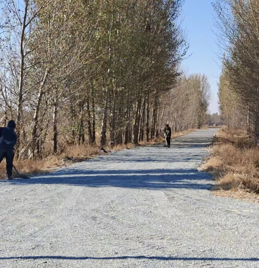 10月24日,架玛吐镇吐林达木嘎查扎实推进高标准农田沙石路建设,组织人员开展沙石小料铺设垫层工作。