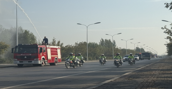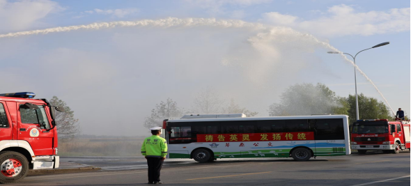 上午8时许,专车抵达达尔罕公园新建烈士陵园入口,消防救援大队以“过水门”这一最高礼仪迎接英烈——两台消防车分列两侧,水炮对射形成晶莹的水门,寓意“英烈荣归,浩气长存”。