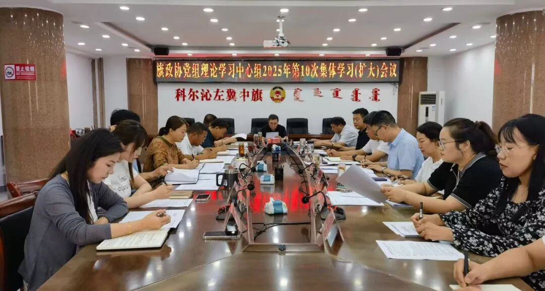 8月15日,旗政协党组理论学习中心组召开2025年第10次集体学习(扩大)会议。旗政协党组书记、主席宝喜主持会议。旗政协党组副书记、副主席杜惠文,党组成员、副主席闫宝东,党组成员、秘书长陈瑜参加会议。机关全体干部列席会议。