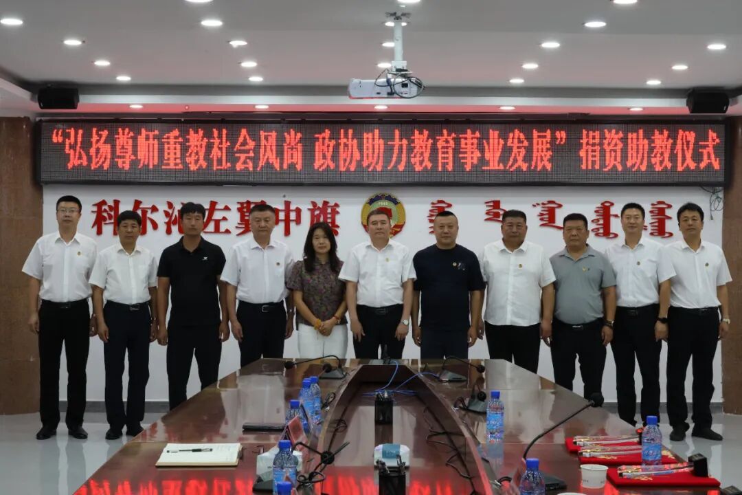 为深入贯彻落实习近平新时代中国特色社会主义思想,弘扬尊师重教的社会风尚,8月25日,旗政协举行“弘扬尊师重教社会风尚 政协助力教育事业发展”捐资助教活动。旗政协主席宝喜,副主席杜惠文、闫宝东、王彦辉出席捐赠仪式,秘书长陈瑜主持,旗教体局局长李洪业、接受捐赠的保康一中和旗蒙古族中学的负责同志,以及政协委员、爱心企业家代表共同参加活动。