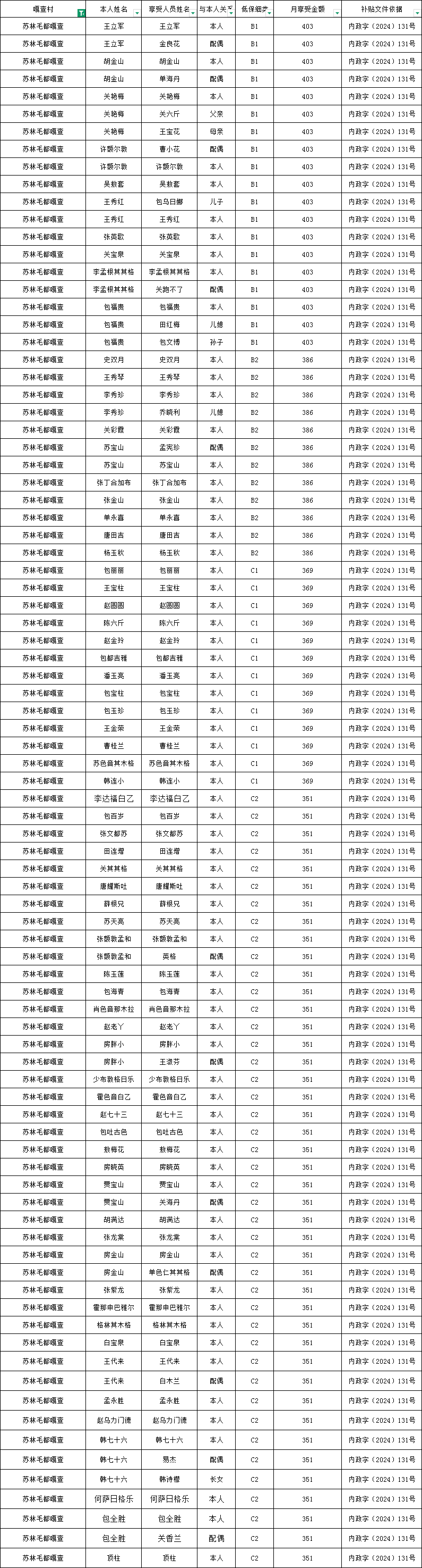 2025年11月份架玛吐镇苏林毛都嘎查农村低保资金发放花名册