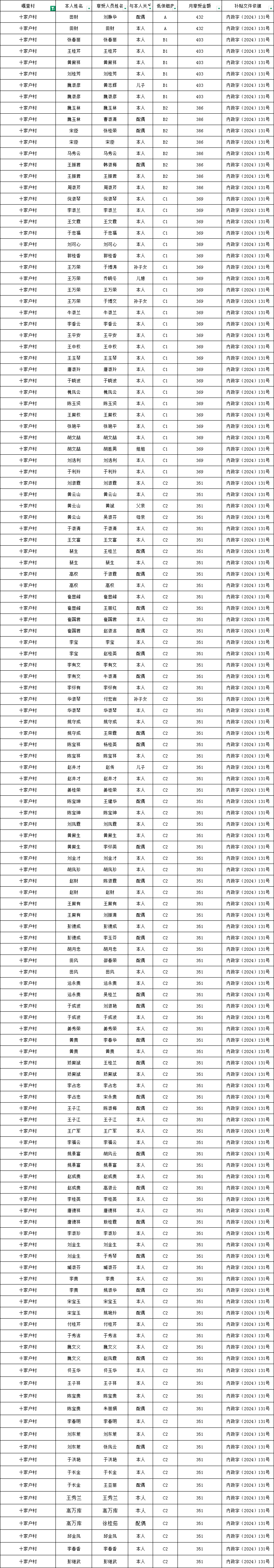 架玛吐镇十家户2025年12月份农村低保资金发放花名册