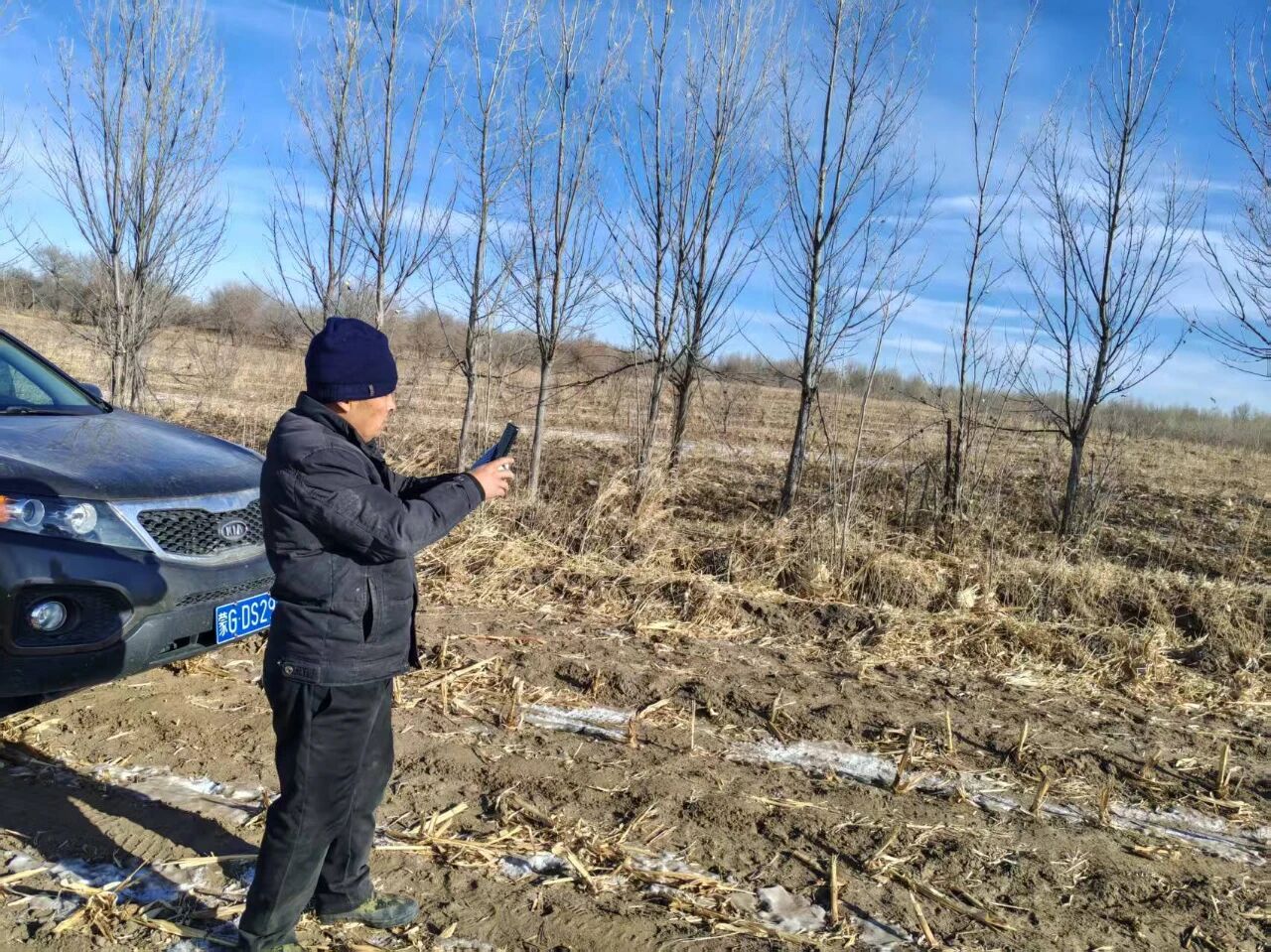 12月4日,代力吉镇林业站工作人员深入西五井子嘎查开展林草湿疑似图斑核查工作,切实杜绝毁林、毁草等违法行为。