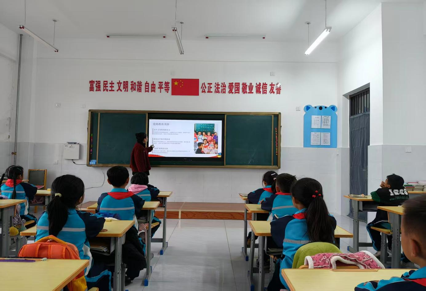 各年级道德与法治教师“六句话的事实和道理”融入课程中,结合历史史实与身边变化,用生动案例帮助学生理解党的恩情引导学生树立听党话、跟党走的坚定信念。